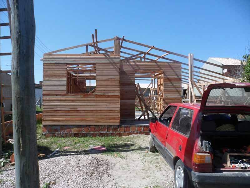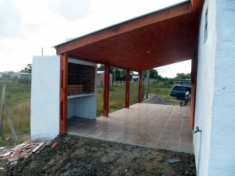 Platea de hormigón armado de 6.60 x 8.40; casa completa, piso de cerámica, baño de material 2.00 x 2.70 mts, cocina en material, extractor, techo de chapa gruesa (no la económica)